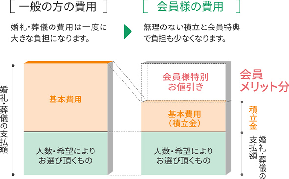 セリエンス互助会の会員は、会員様限定の優待割引でセレモニーをご利用いただけます。しかも、掛金や会員権は生涯補償で安心です。